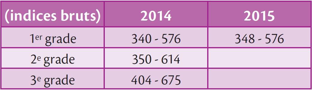 (En rouge, l’indice majoré supplémentaire venant s’ajouter à l’indice précédemment appliqué)