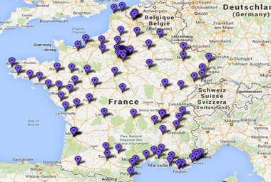 La carte des 117 villes de plus de 50 000 habitants en France métropolitaine et leurs taux respectifs de taxe d’habitation et de taxes foncières pour 2014 :
